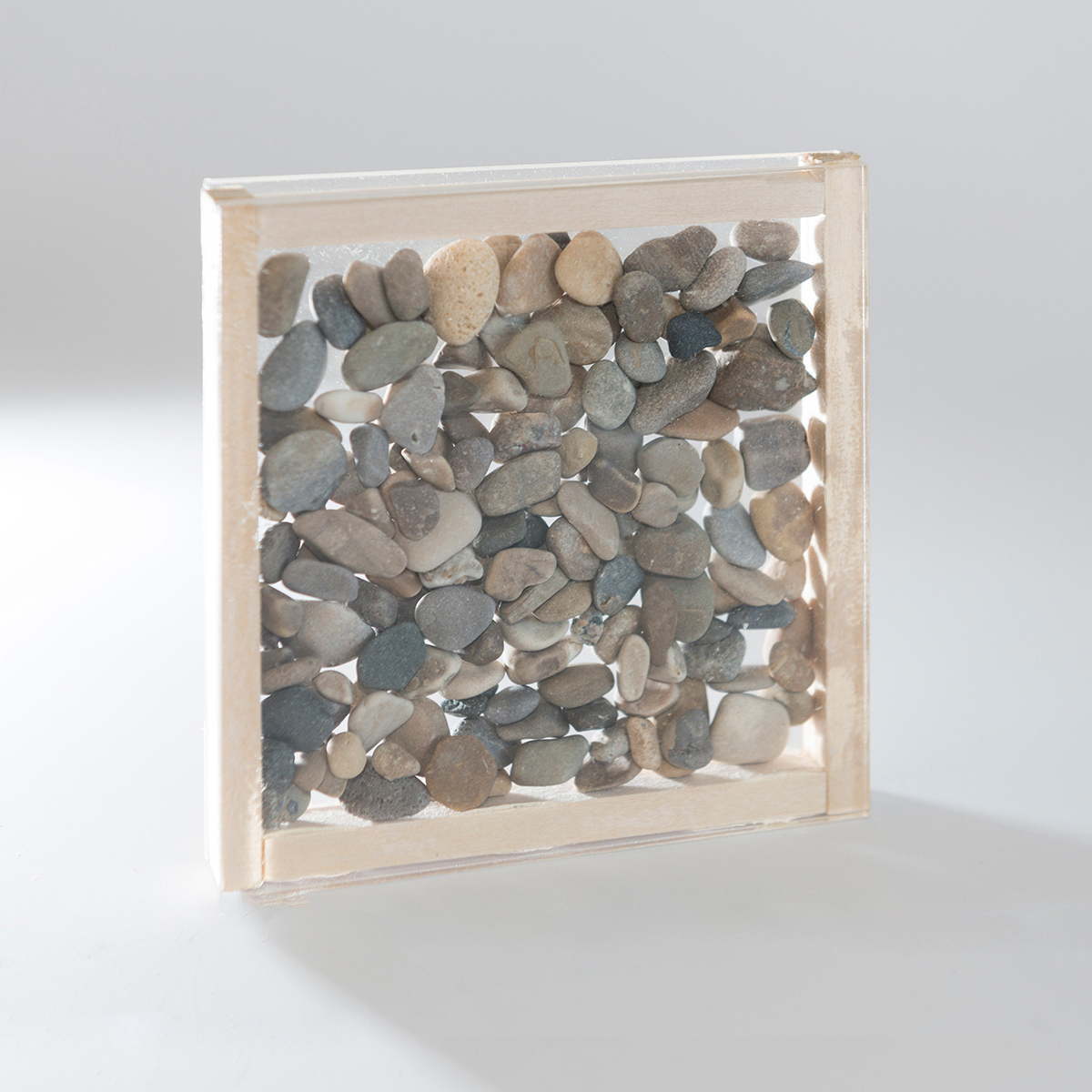 Sand and stone, sturdy materials, with a human touch softness and a warm glow, these seemed like an opportune voice to experiment with as a screen. The scale of the mineral can give you a wide spectrum of light qualities, specular to diffuse. They all conceal the environment behind it, but at large scales, light and shadow become colors. For this exercise, we were to design a temporary structure for the management of an adjacent site, but the building would act more like a pavilion to test out screen techniques. Aiming for a modular system, this building is constructed from resin “bricks” with rocks of various sizes and densities cast within. Thesis bricks would have holes drilled on the top and bottom for pins to lock them in place. It would act as a rain screen and would require a curtain wall for the 50% of the building that requires coverage from the elements. Since diaphaneity or clarity isn’t an issue, polycarbonate can be used in place of glass.